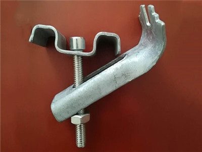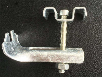 C型鋼格板安裝夾:由一塊帶雙鉤的上壓板和一支可焊接在支撐構(gòu)件上的M8(或M10)的六角頭螺栓組成。
